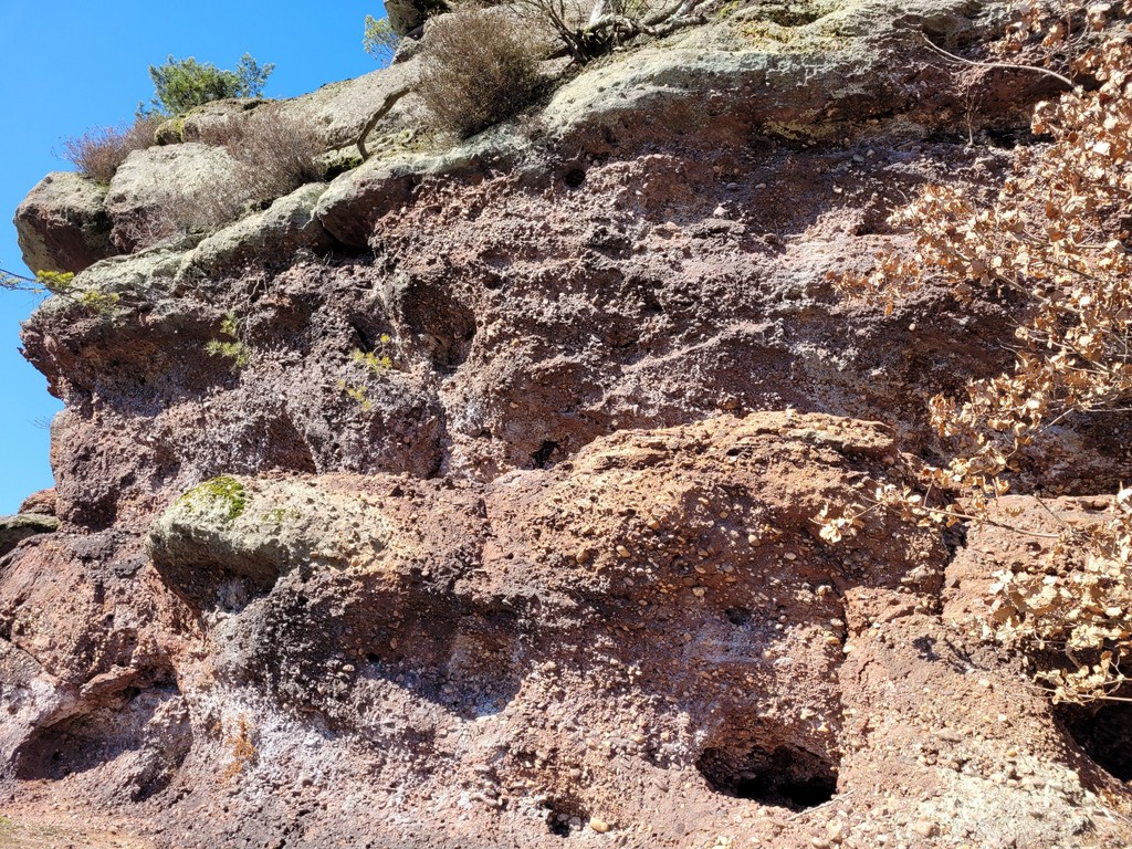 Auf dem Weiterweg unterhalb des von Kieselsteinen durchsetzten Felsens.