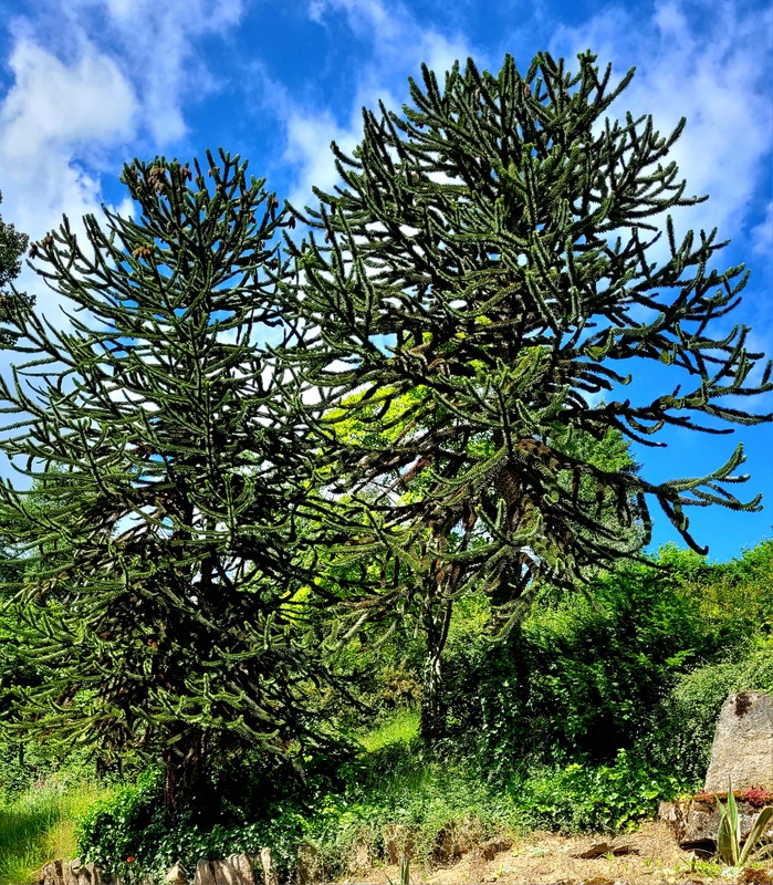 Die Araukarie (Araucaria araucana), ein Nadelbaum, ist ein lebendes Fossil. Es gab sie schon vor 220 Millionen Jahren auf den Urkontinenten. Die chilenische Araukarie, eine von 36 Arten, wurde 1795 nach England eingeführt unter dem Namen Chilenische Pinie. Dieser Name ist botanisch falsch, ebenso die Bezeichnung Schmucktanne. 1850 kam die chilenische Spezies erstmals nach Deutschland.