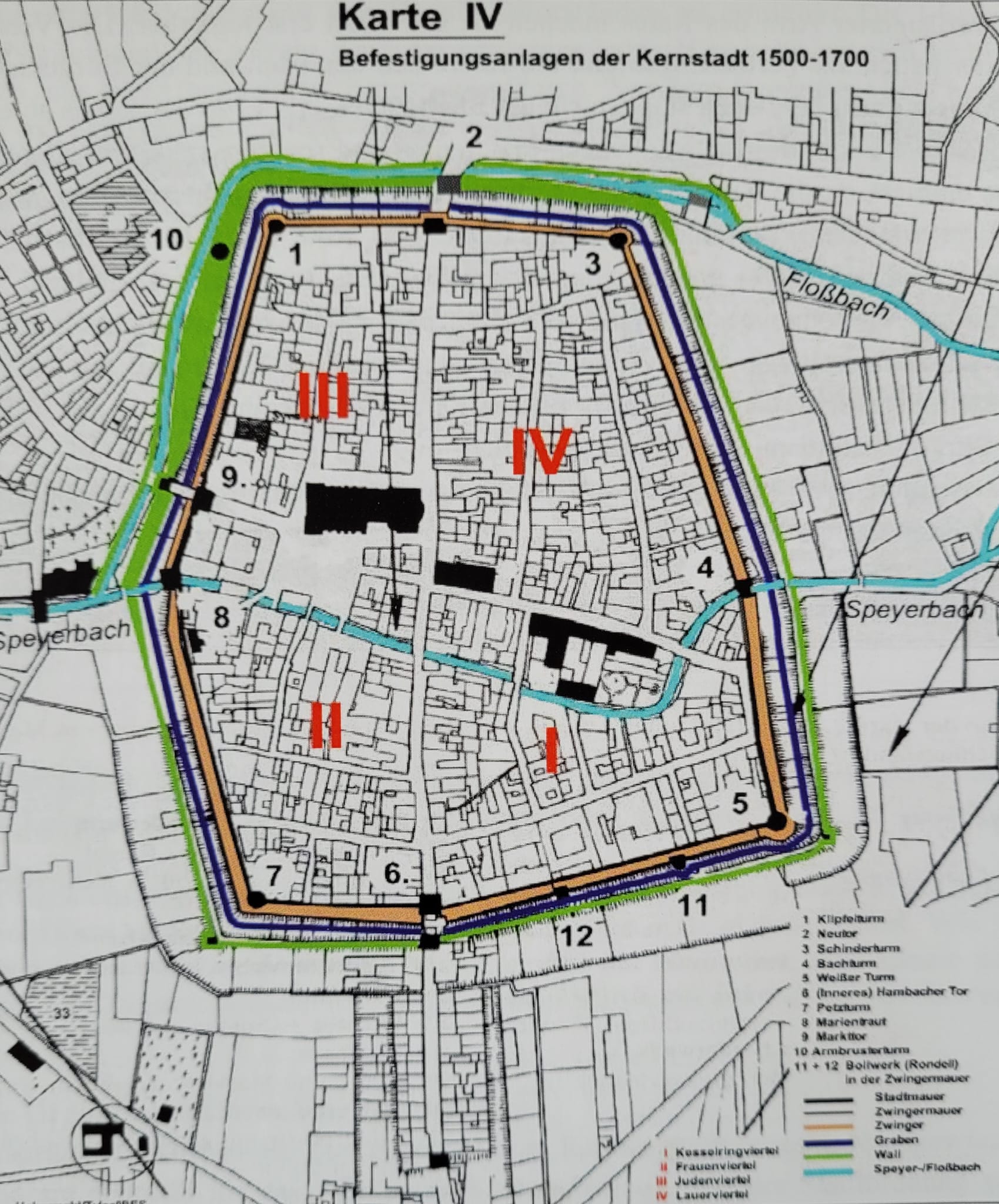 I Kesselringviertel, II Frauenviertel, III Judenviertel und IV