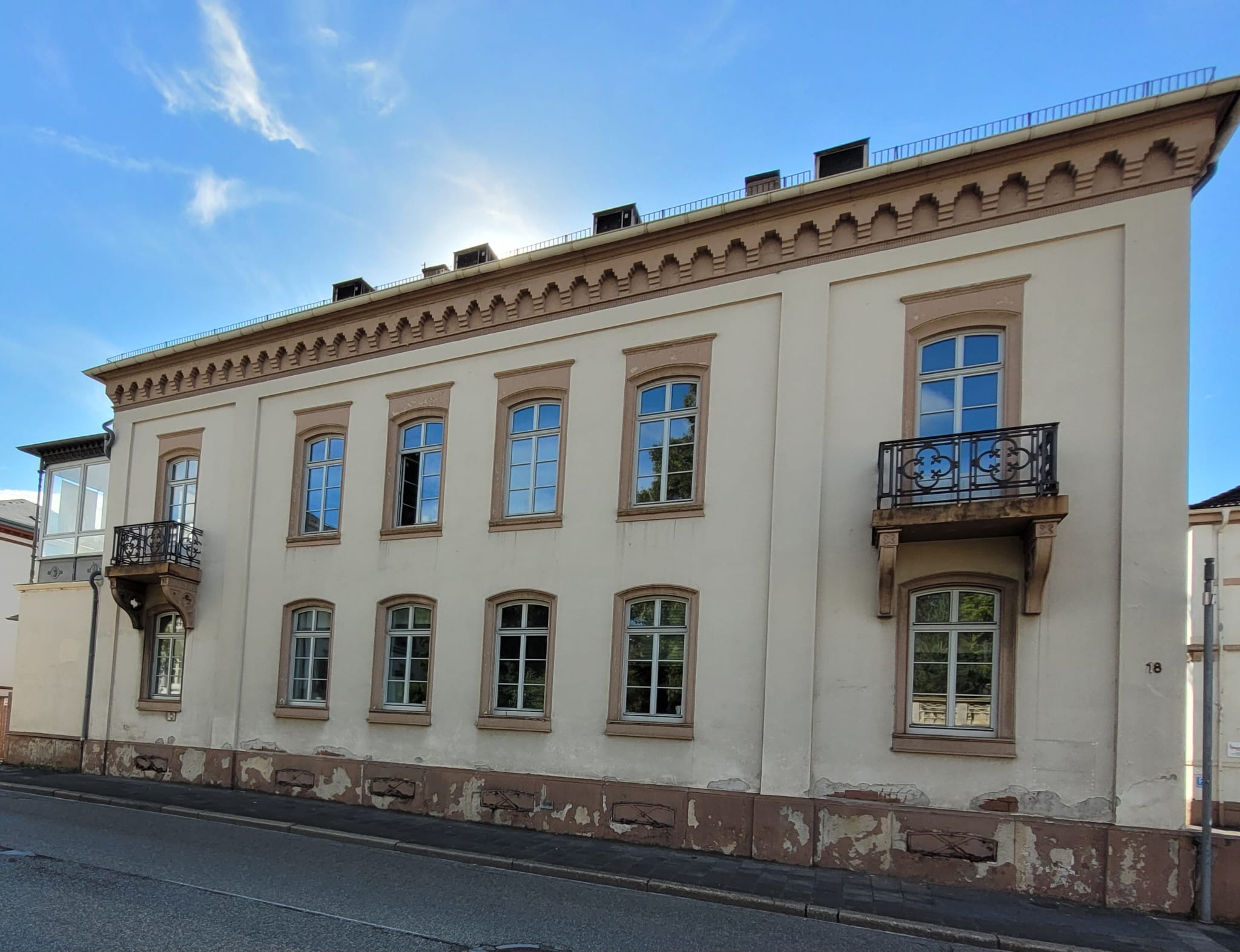 1849 erbaut. Schönes Gesims unter der Dachtraufe. Der Wintergarten