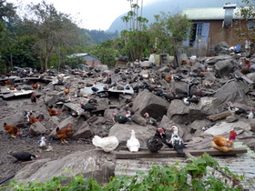 Eigentlich war der Tag mehr als Puffertag für alle Fälle gedacht. Aber wir waren um diesen Ausruhtag sehr froh und genossen die Ruhe und die Sonne. Lediglich ein Gegacker und Geschnatter war zu hören. Der Sache nachgehend, fand ich in der Nähe ein felsiges Gelände mit hunderten von Hühnern und Enten, die unserem Wirt gehören. Das ließ nur einen Schluss zu: Hier gibt es jeden Tag Geflügel. Um frisches Gemüse zu haben, wird es im Garten angepflanzt. Alles andere bringt der Hubschrauber, den man jeden Tag hören und sehen kann. Ebenso dreht täglich der Heli mit Touristen seine Runden.
