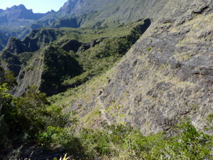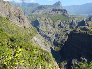 Caverne Piton des Neiges nach dem Abmarsch | Blick vom Caldera-Rand des Cirque de Cilaos in den Cirque |