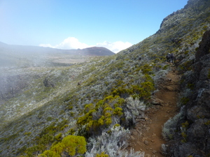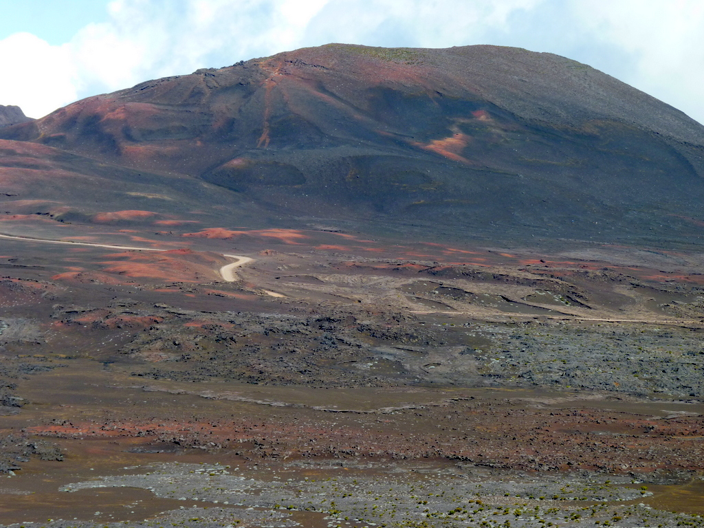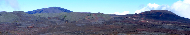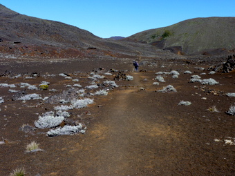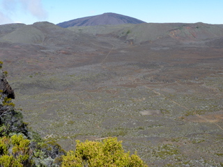 Hangweg bevor wir in die Plaine des Sables abgestiegen sind | Die Plaine des Sables. Im Hintergrund der Piton de la Fournaise. Schön zu sehen unser Wanderweg |
