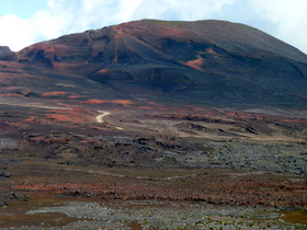 Einer der Vulkankegel zwischen innerem und äußerem Caldera-Rand | Wüste bevor wir den inneren Caldera-Rand erreichten |