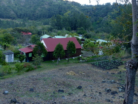 Der GR-Weg führt über Aurère. Ein wesentlich kürzerer Seitenweg erwies sich als bestens begehbar, führte durch einen Wald mit hohen Filao-Bäumen, die unserer Kiefer ähneln. Fast hätte man glauben können, wir sind im Pfälzerwald unterwegs. Eine tiefe Schlucht war noch zu überqueren, über die wir dank einer Brücke bequem hinüberkamen, bevor wir nochmals 100 Hm zum Ort aufstiegen. Ein kleines Dorf, aber mit Schule, Kirche, Campingplatz und Gîtes. Nach ein wenig Sucharbeit fanden wir unsere Unterkunft, wo wir vom Wirt bereits erwartet wurden.