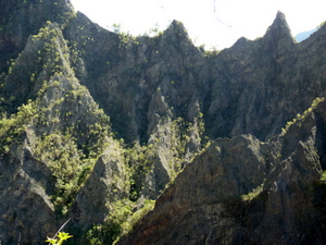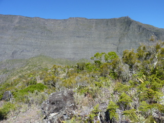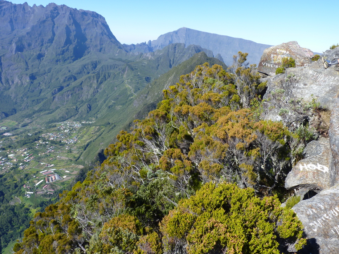 Wir wanderten hinauf zur Kirche und folgtem dem Weg zum Plateau Cerf (Hirschplateau), wo wir auf den GR 3 stießen, dem wir bis Marla folgten. An diesem Tag kamen wir der Felswand des Rempart sehr nahe und gingen sogar auf seinem etwas weniger steilen Fuß entlang. Immer wieder imponierend diese gigantischen Meisterwerke der Natur. Um ein frühzeiges Fazit zu ziehen: La Réunion muss man gesehen und erwandert haben.