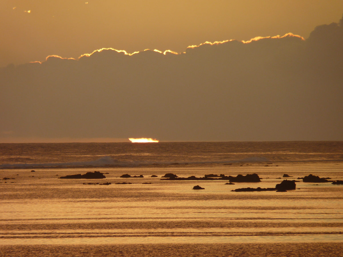 Im Park von St. Pierre | Die Sonne spitzelt in einem schmalen Spalt zwischen Wolken und Meer hervor |