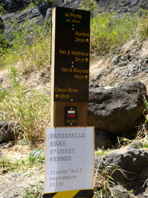 Îlet à Malheur – La Plaque(899m)(2km)(0,5h)(GR R3, Sentier Scout) – südl. Bord Martin (1.620 m)(6km)(3,25h)(GR R3) – Col des Bœfs(2.011m)(8km)(5h)(GR R3) – La Nouvelle (1.400m)(11km)(8,5h)(GR R1) – Gîte Le Relais de Mafate |