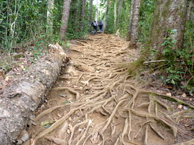 Schmaler Fels am Col de Fourche. Links dahinter die Crête des Calumets | Wurzelweg im Filao-Wald |