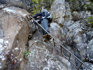 Die Franzosen erzählten noch, dass der Übergang nur provisorisch hergerichtet worden sei. Man müsse sich auf einem schmalen Absatz an einem Seil an der Wand entlanghangeln. Das wäre für uns sicherlich kein Problem gewesen.