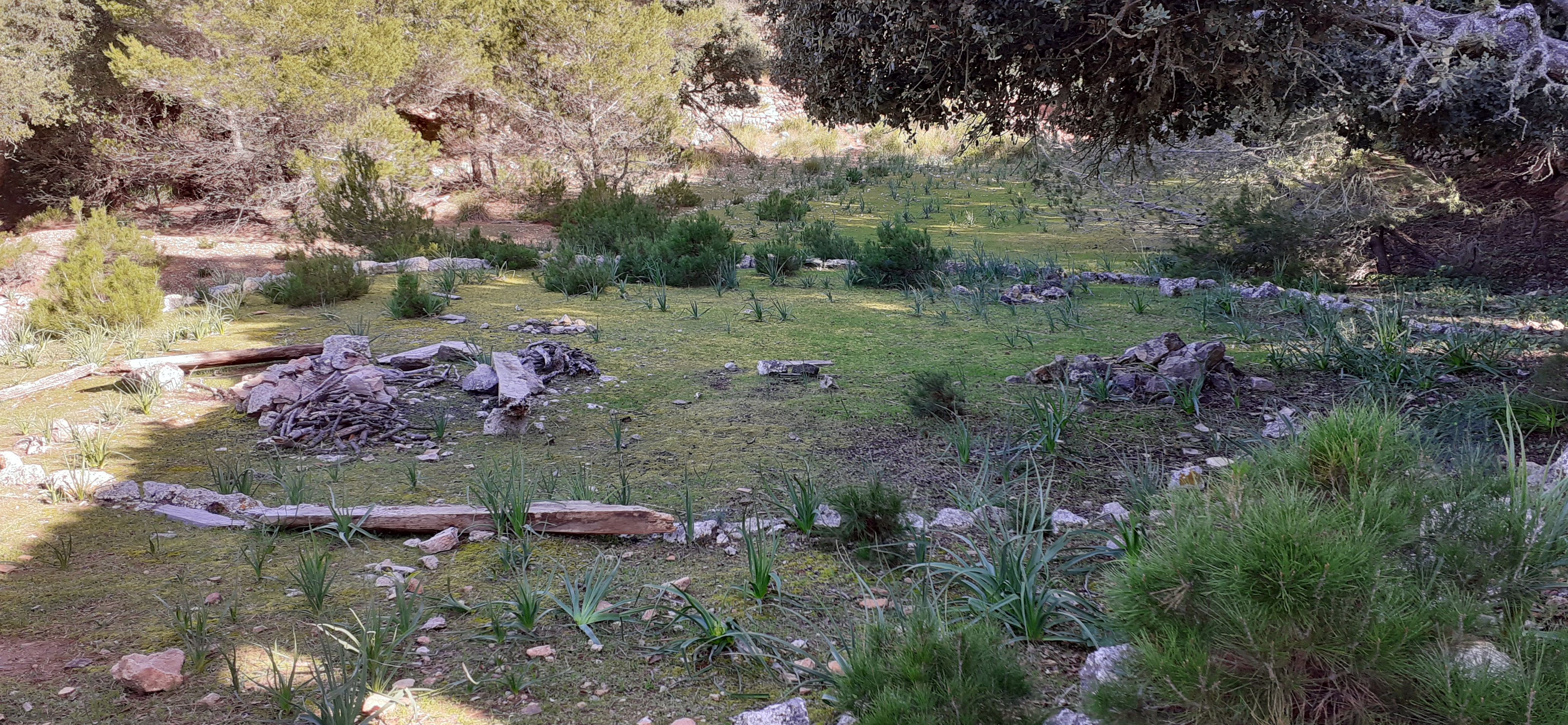 Alter Dreschplatz. Wenn man an der Südostseite des Rundweges den auf der Karte eingezeichneten Weg weiter nach Süden geht, stößt man auf eine Fincaruine mit diesem Platz |