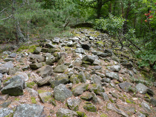 Als wir den Asphalt in Battenberg hinter uns gelassen hatten, führte uns der Weinsteig in den Wald hinein. Schade, dass der Weg nicht direkt am Ungeheuersee ( siehe auch PWV Weisenheim am Berg) vorbeigeht, sondern dass dieser nur als Abstecher markiert ist. Bestimmt werden viele diese zwei mal 500 Meter scheuen und somit eine schöne Idylle im Pfälzerwald versäumen.