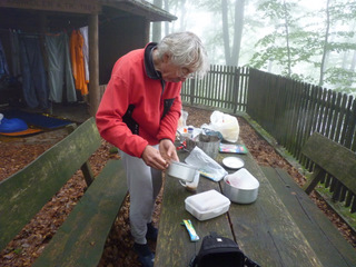 Gerd Fouquet und ich sind diese Tour auch als Vorbereitung auf unsere Pyrenäenwanderung gegangen. Bei unseren vier Übernachtungen haben wir nur im Freien und in Schutzhütten biwakiert, um uns an das unbequeme Schlafen zu gewöhnen, das uns in den Pyrenäen erwartete. Zu diesem Übungsprogramm gehörte auch das Kochen und Verzehren einfacher Speisen. Neben profimäßiger Expeditionsnahrung diente uns auch der preiswertere handelsübliche Kartoffelbrei in Pulverform, der mit einer Instant-Suppe als Soße durchaus genießbar ist.