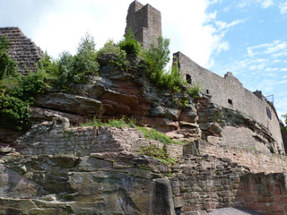 Dann stiegen wir nach Bad Dürkheim hinunter. Am Wegesrand lockt die Weinstube Zur Keschdedell außer montags zur Einkehr. Leider muss man sodann durch den ganzen Ort hindurchwandern, wobei sich natürlich eine Stadtbesichtigung anbietet. Durch Weinberge hindurch erreichten wir den Flaggenturm. Ein kurzer Abstecher führt zum Mundhardter Hof, der Gelegenheit zu Einkehr und Übernachtung bietet, außer montags und donnerstags. Nach Durchquerung des Poppen- und Wachenheimer Tales gelangten wir zur interessanten Burgruine Wachtenburg mit der gemütlichen Burgschänke, deren Öffnungszeiten auch an Montag und Dienstag vorbeigehen. Es ist schade, dass die Einkehrmöglichkeiten vielerorts beschränkt sind.