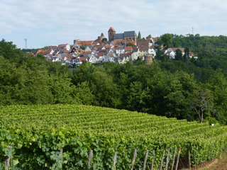 Nun erreichten wir das malerische Dörrenbach mit seiner imposanten Wehrkirche und den schönen Fachwerkhäusern. Der letzte längere Anstieg führte uns zum Stäffelsbergturm, der leider wegen Instandsetzungsarbeiten gesperrt war. Entlang des erst vor kurzem eröffneten Westwall-Wanderweges und über die Burgruine Guttenberg wanderten wir durch Wald und zuletzt durch Weinberge nach Schweigen zum Deutschen Weintor, dem Endpunkt des Pfälzer Weinsteiges. Mit Bus und Bahn kamen wir wieder nach Hause.