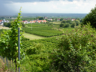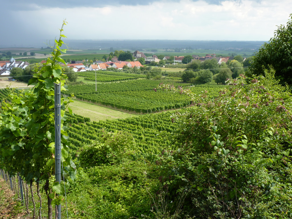Um in einer Schutzhütte übernachten zu können, nahmen wir noch einen Umweg über den Karlsplatz in Kauf. Kaum dort angekommen überraschte uns ein heftiger Regenschauer. Von hier aus wanderten wir direkt nach Bad Bergzabern. Der Weinsteig führt jedoch über das Muskatellerdorf Gleiszellen und Pleisweiler. Vor Bad Bergzabern hat man die Möglichkeit, sich bei schlechtem Wetter in einer Hütte unterzustellen. Kurz hinter Bad Bergzabern steht wiederum eine Unterstandshütte; dies wird doch wettermäßig gesehen kein schlechtes Omen bedeuten? Nein, im Gegenteil. Da es ja auch in der Pfalz Regenwetter gibt, sollten an einem Prädikatswanderweg viel mehr solcher Hütten existieren.